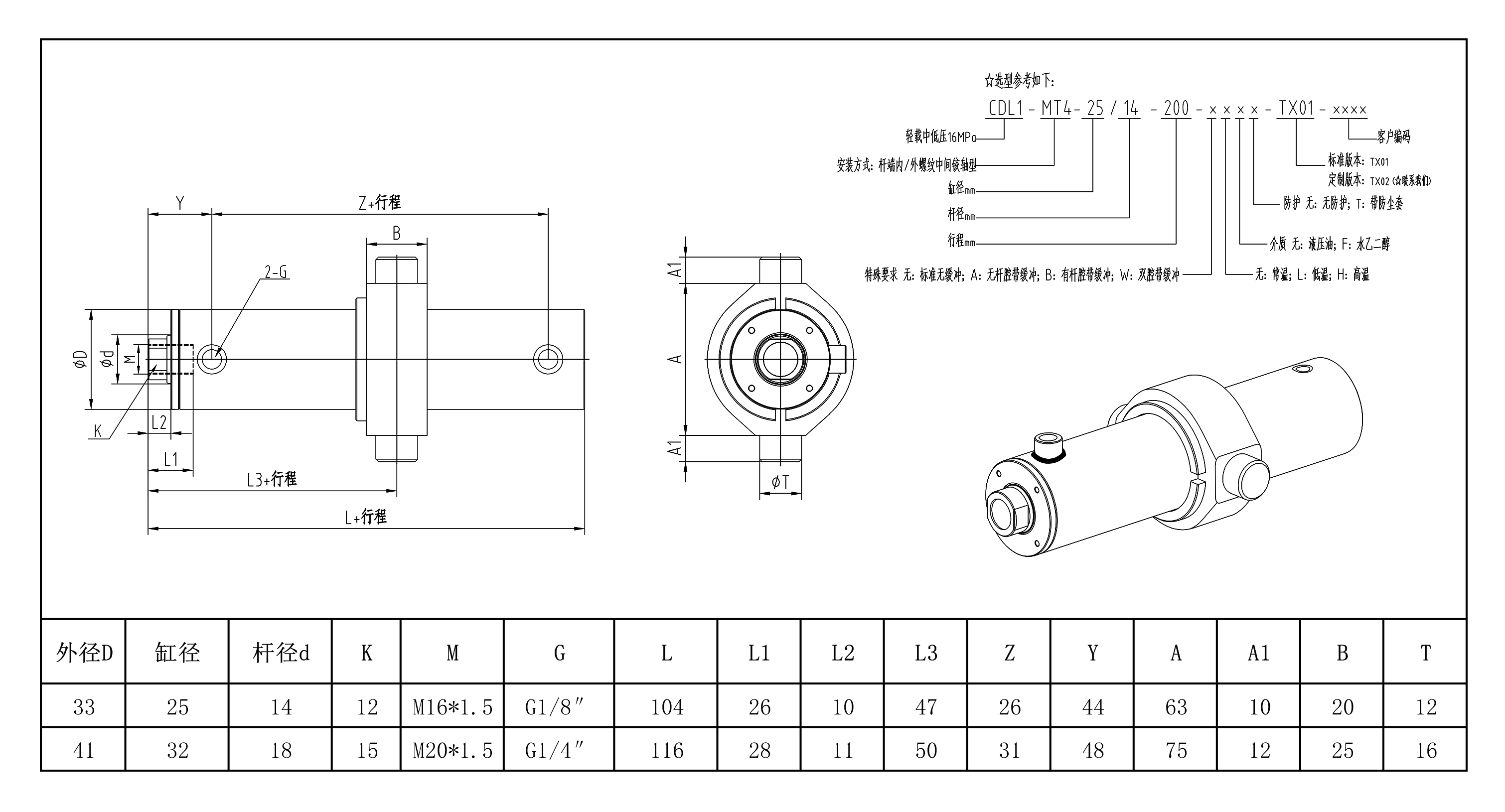 安装形式:MT4 AL-φ25-32mm 杆端内螺纹中间铰轴型 压力:28MPa (特殊压力等级可定制) 内径:Φ25 Φ32 轻量化设备、尺寸小重量轻、负载小、压力较低的场合 采用进口12.9级的螺栓、采用进口密封件、采用45#调质缸筒、42CrMo调质活塞杆 可选装防尘套;可选装位移传感器,位置开关;可调缓冲等。 其他特殊应用,如:耐高温、耐低温、耐腐蚀、特殊介质等需求均可定制。