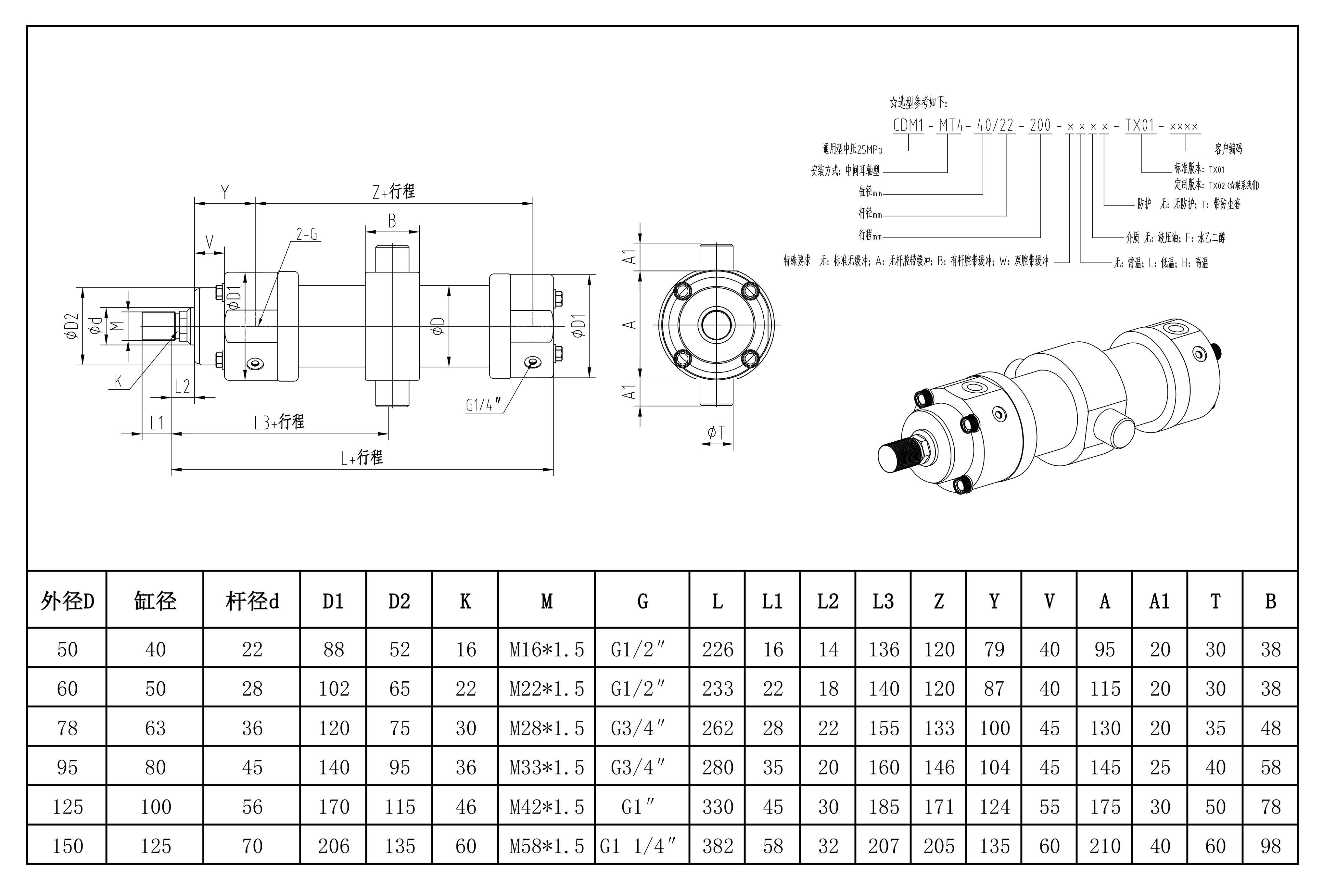 内径:Φ25 Φ32 Φ40 Φ50 Φ63 Φ80 Φ100 Φ125 【*Φ160 Φ200* 特殊规格】