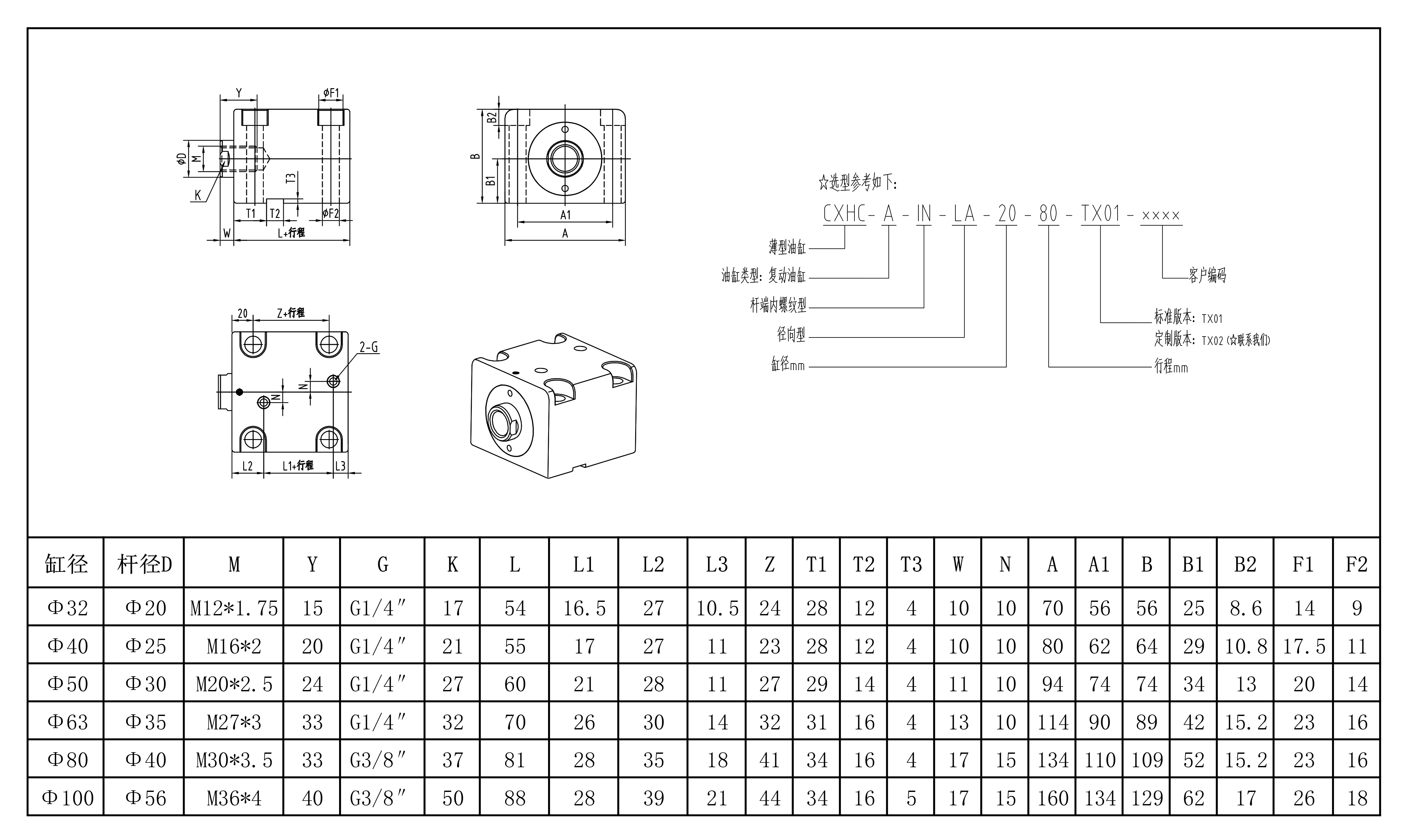 安装形式:基础LA内螺纹型(双作用单活塞缸)