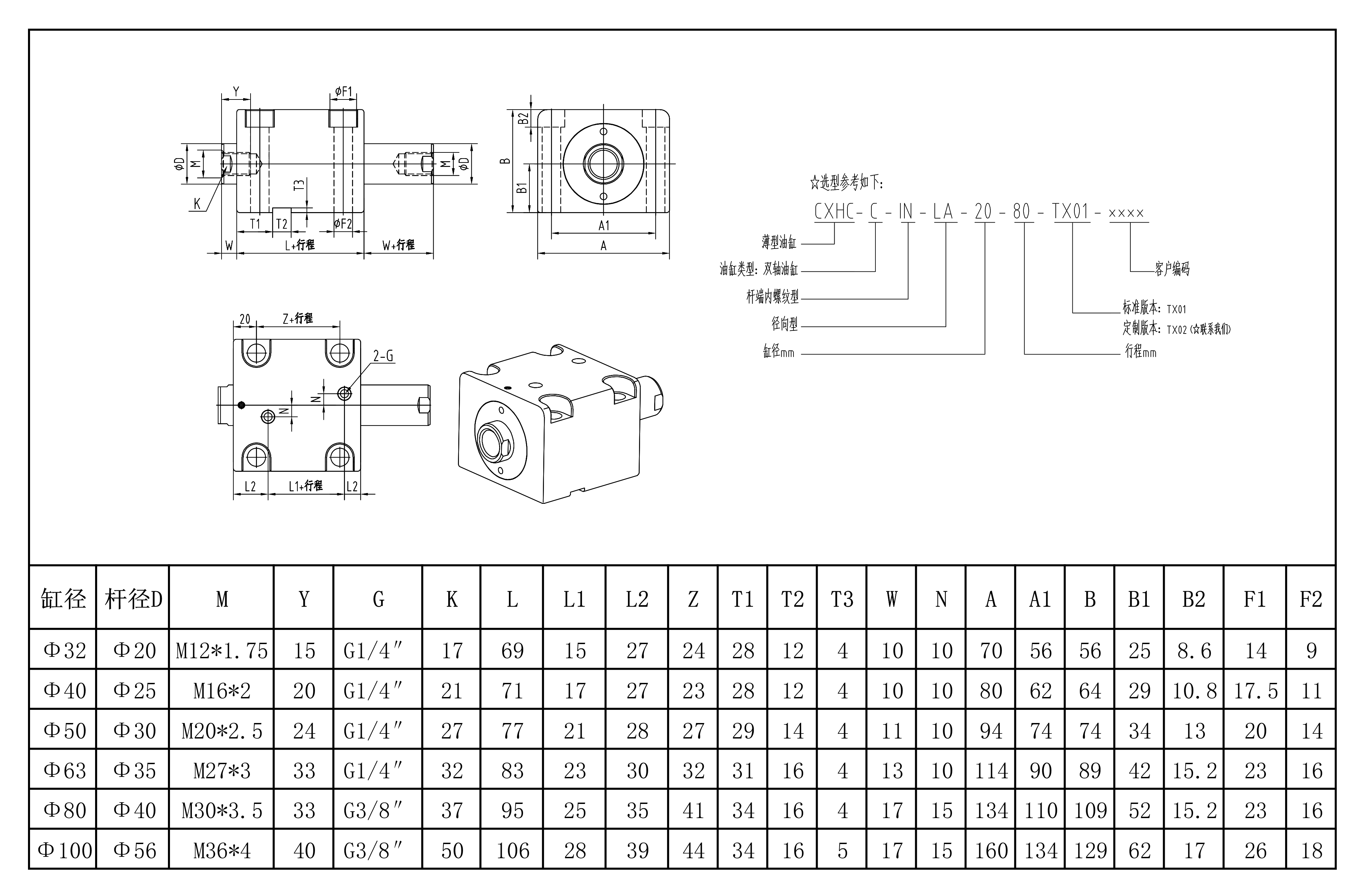 安装形式:基础LA内螺纹型(双作用双活塞杆)