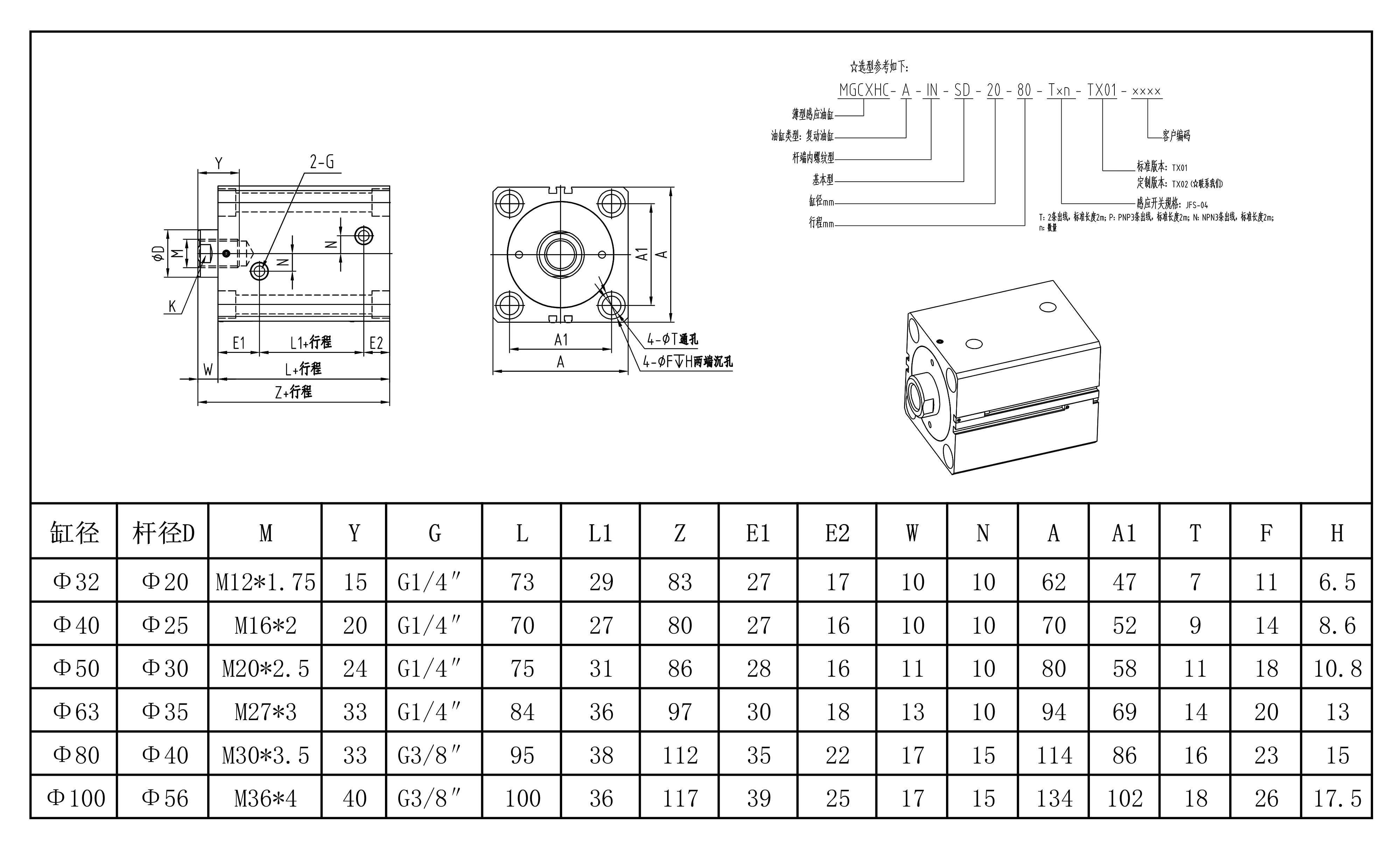安装形式:SD内螺纹感应式(双作用单活塞杆 )
