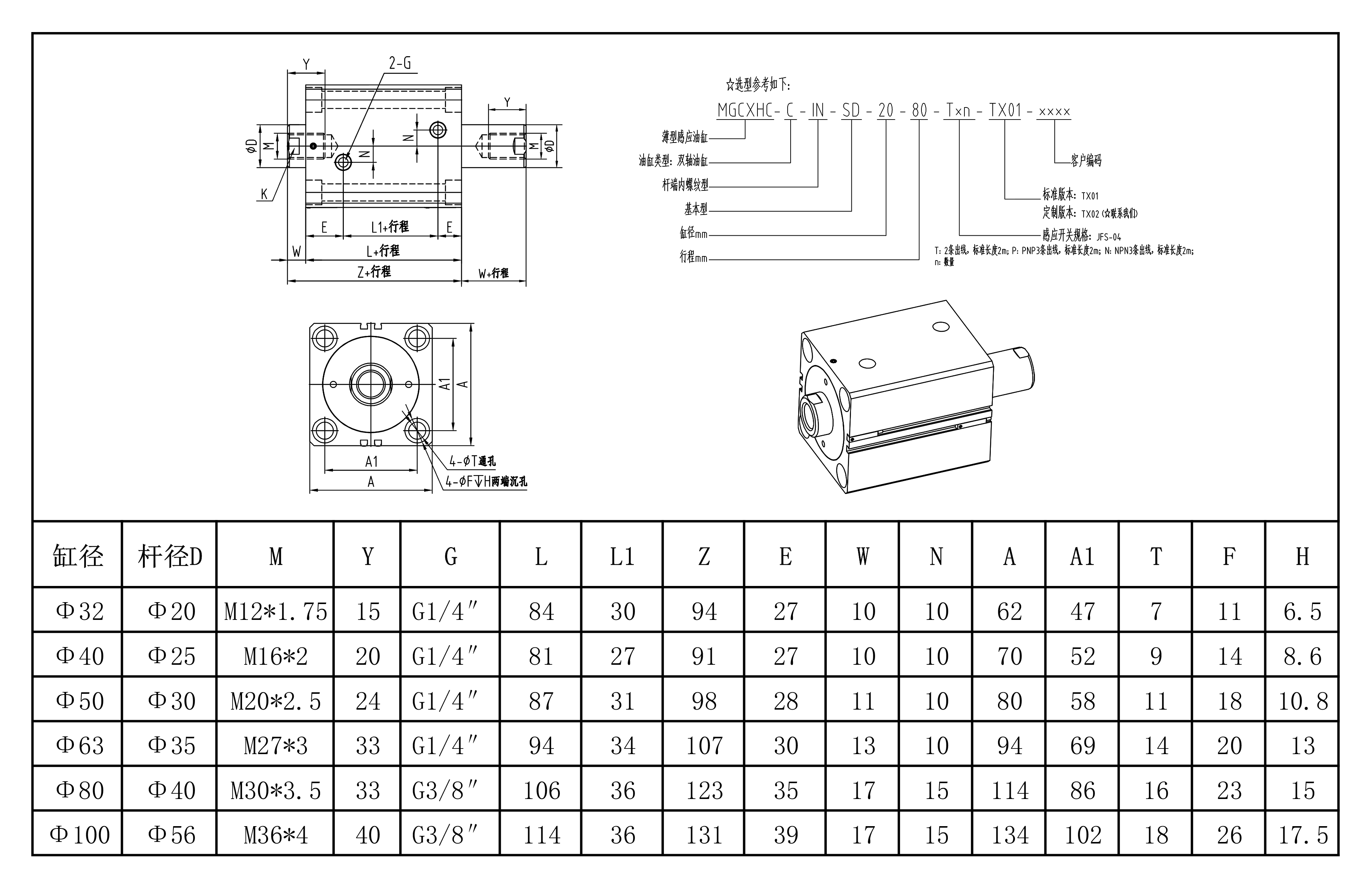 安装形式:SD内螺纹感应式(可调节双作用双活塞杆 )