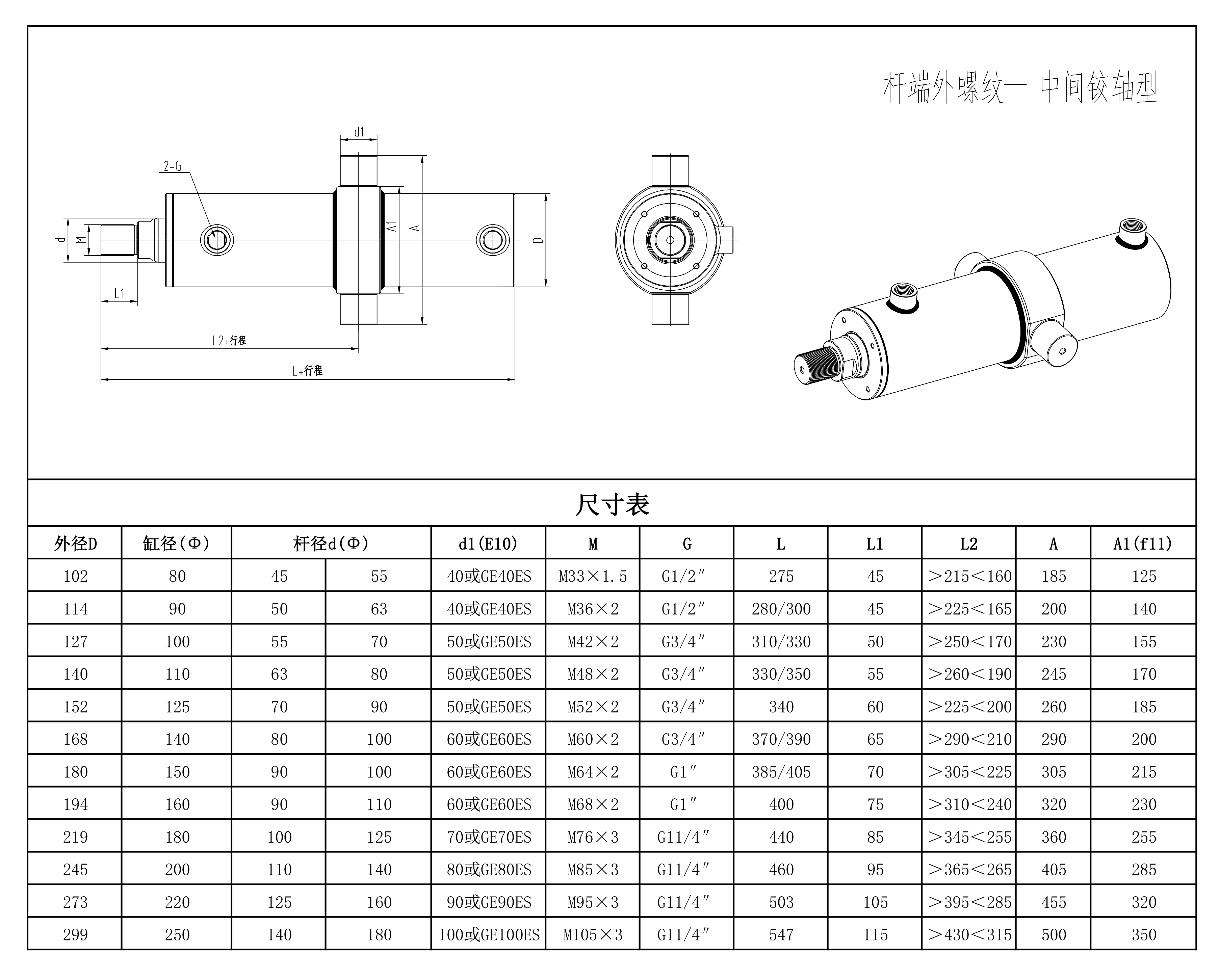 安装形式:杆端外螺纹 中间铰轴型
