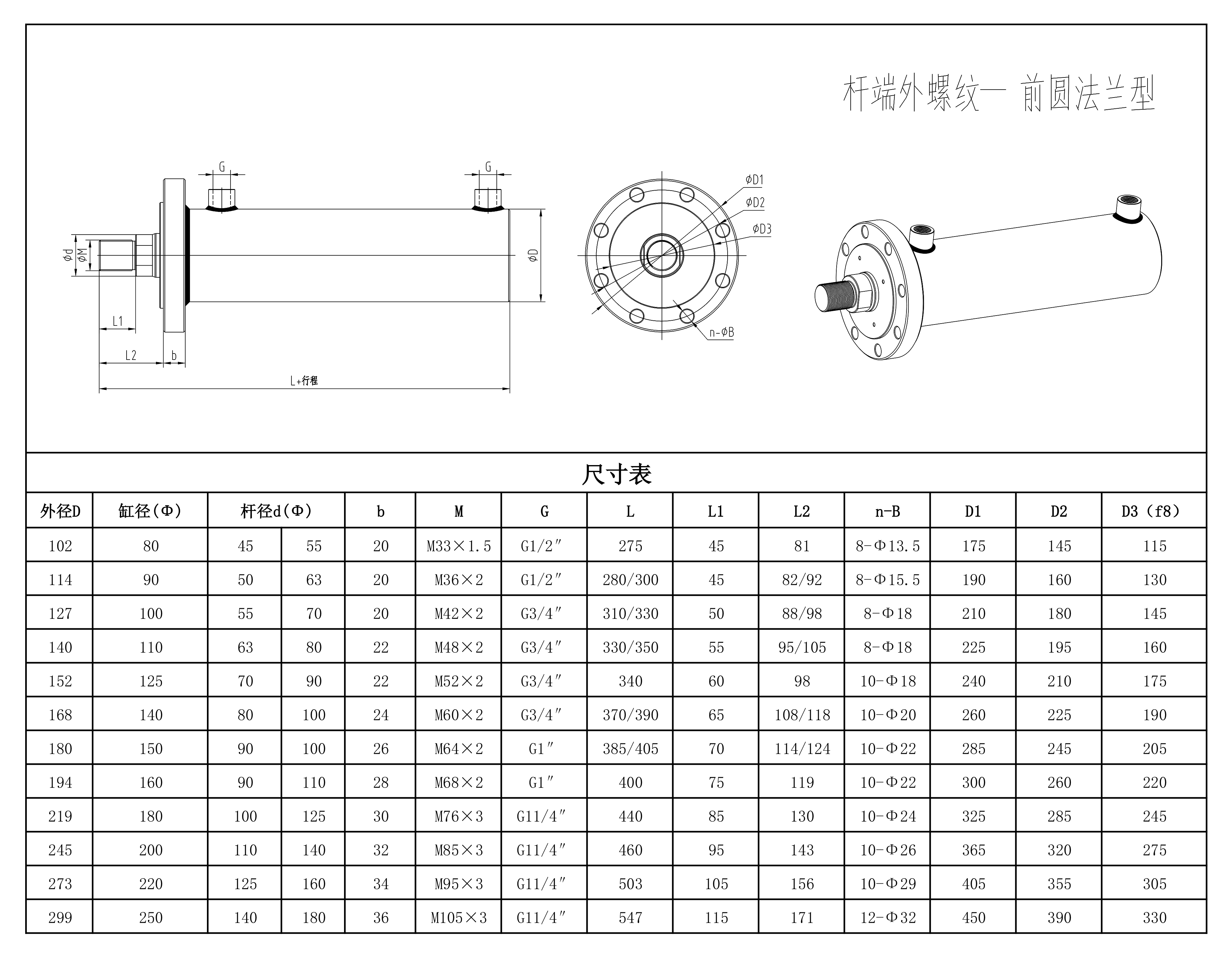 安装形式:杆端外螺纹 前圆形法兰型